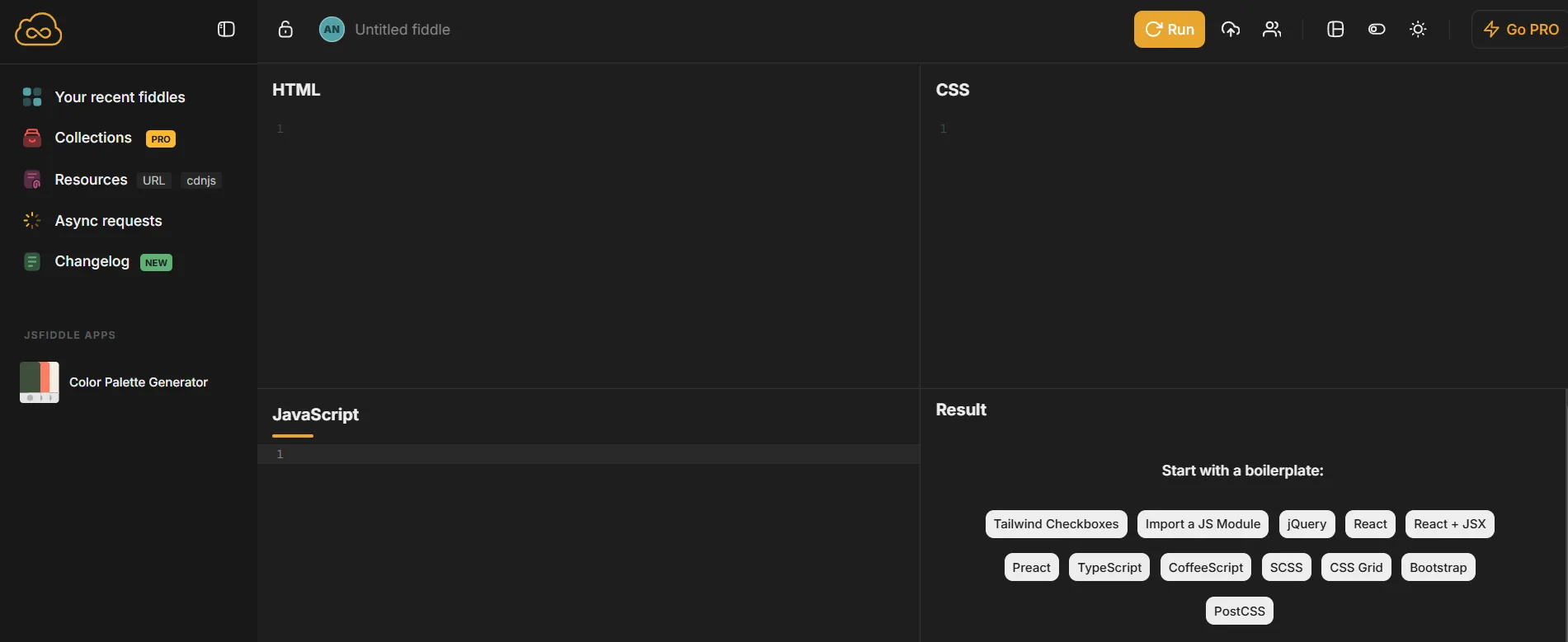 Популярный онлайн-редактор для тестирования и визуализации HTML, CSS и JavaScript. Он позволяет в реальном времени наблюдать, как изменяется веб-страница в зависимости от вашего кода. Вы можете легко делиться своими «песочницами» (fiddles) с другими, что делает его отличным инструментом для совместной работы и обучения.